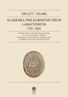 300 let Academia philharmonicorum Labacensium (1701–2001)Zbornik referatov z mednarodnega simpozija 25. in 26. oktobra 2001 v Ljubljani